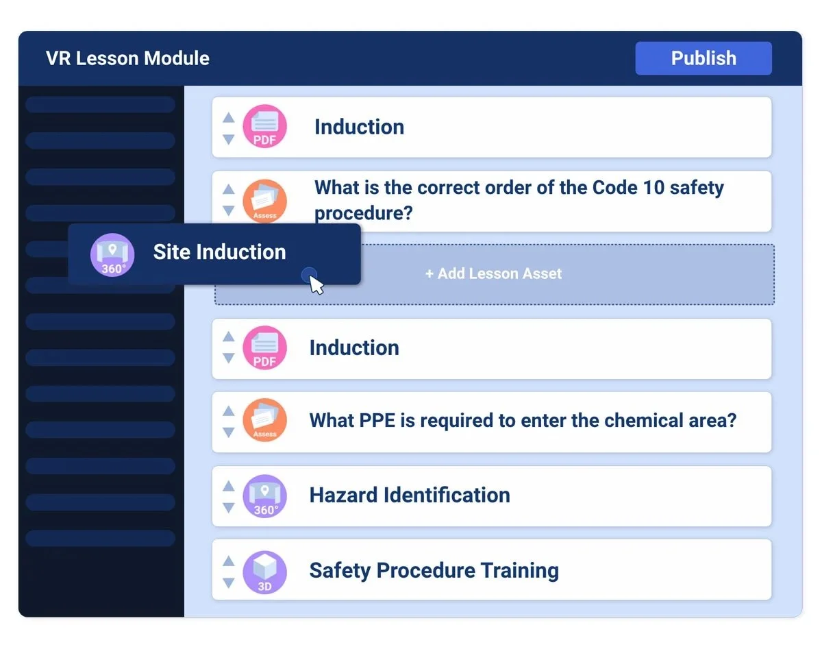 Effortlessly infuse interactivity into your 360 content using our drag-and-drop interface. Unleash site induction training that puts trainees right in the action, create mesmerizing customer walkthroughs that leave a lasting impression, tackle hazard indentification tasks with thrilling realism, and showcase procedural best practices like never before.